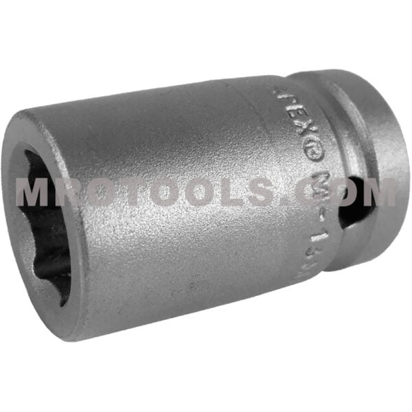 M-13MM15 Apex® 1/2” Square Drive 6-Point Impact Socket, Metric, Magnetic, Standard Length. Socket Type: 6-Point Hex Opening: 13mm Overall Length: 38.1mm Nose End Diameter: 22.2mm Drive End Diameter: 23.8mm Opening Depth: 8.7mm